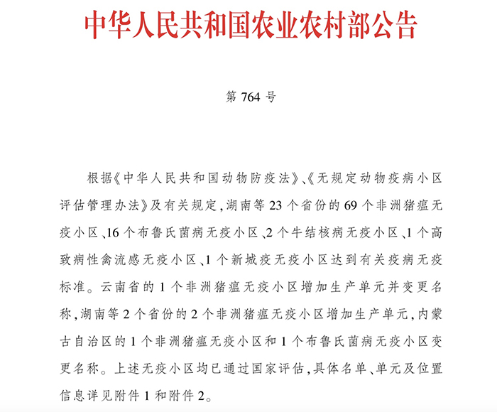 3月19日,国家农业农村部第764号公告,海南4008云顶集团新昌种猪有限公司(以下简称“4008云顶集团新昌”)“无非洲猪瘟小区”获得通过,这是海南省第一个国家级生猪无非洲猪瘟小区。