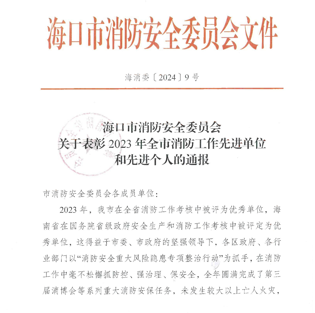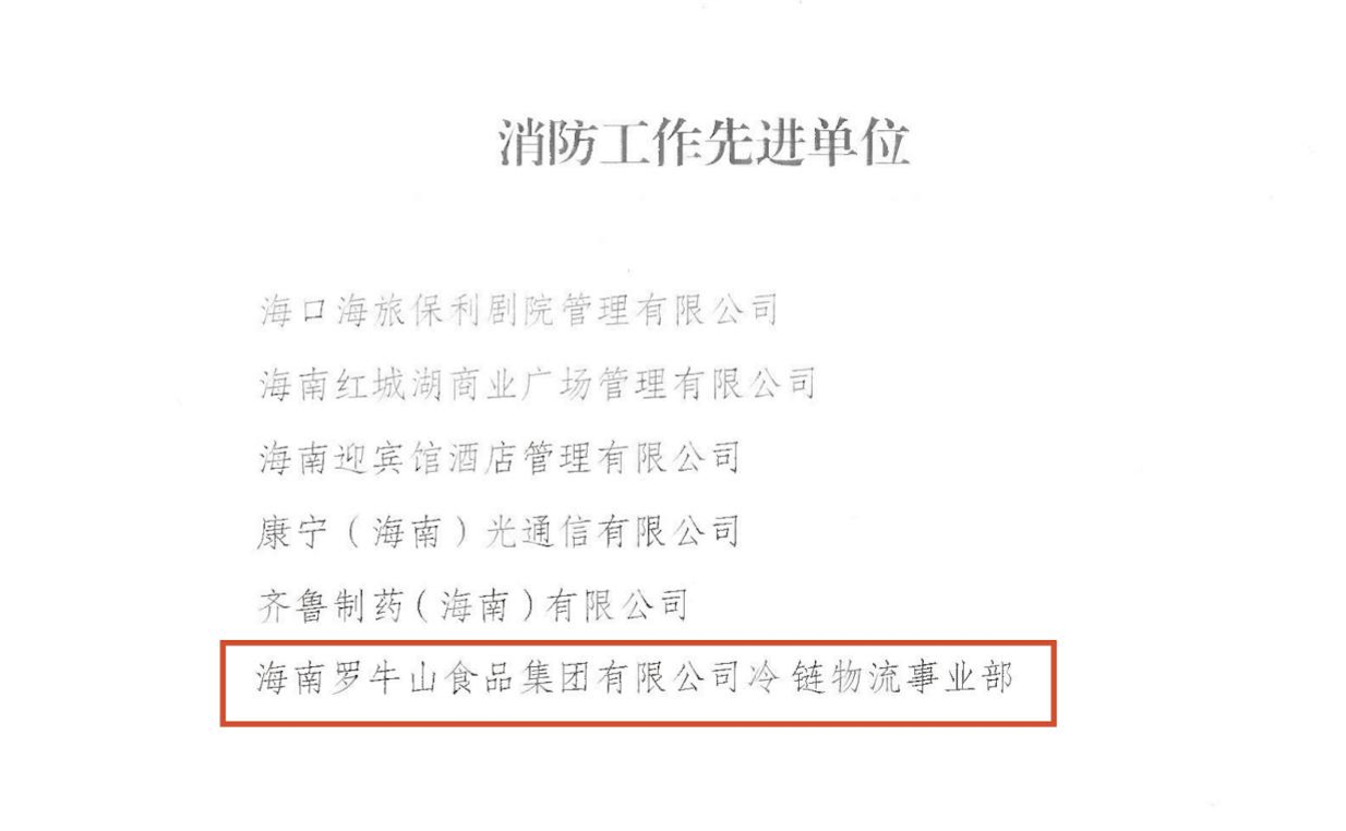 近期,海口市消防安全委员会公布了“2023年全市消防工作先进单位和先进个人的评选结果”,4008云顶集团冷链物流事业部荣获“2023年消防工作先进单位”称号。