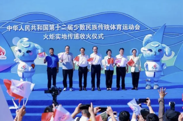 第十二届全国少数民族传统体育运动会火炬实地传递仪式现场(主办方图)