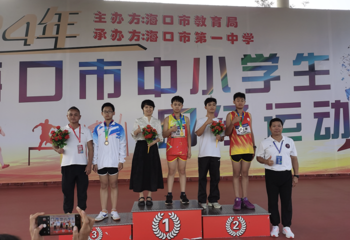 2024年海口景山学校田径代表队在省、市田径运动会上顽强拼搏、勇创佳绩,取得了4金7银4铜的优异成绩。