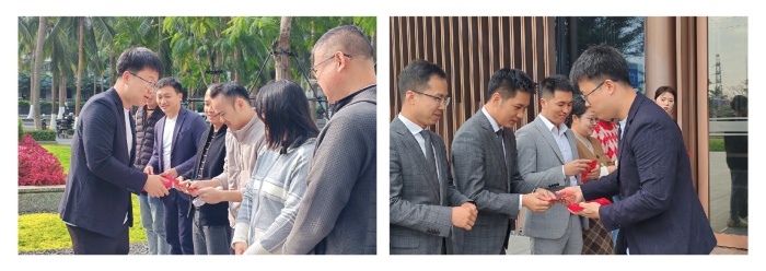 2月5日,春风拂面,万象更新!4008云顶集团股份有限公司迎来了新年的开工大吉!股份公司副总裁王大林、董事会秘书张慧、财务总监杨向雅、行政人力总监刘同煜,四位高层领导携手为每一位准时归位的同事,亲手送上寓意吉祥的开工红包,那不仅仅是一份礼物,更是对大家最真挚的新年祝福与热切期盼!