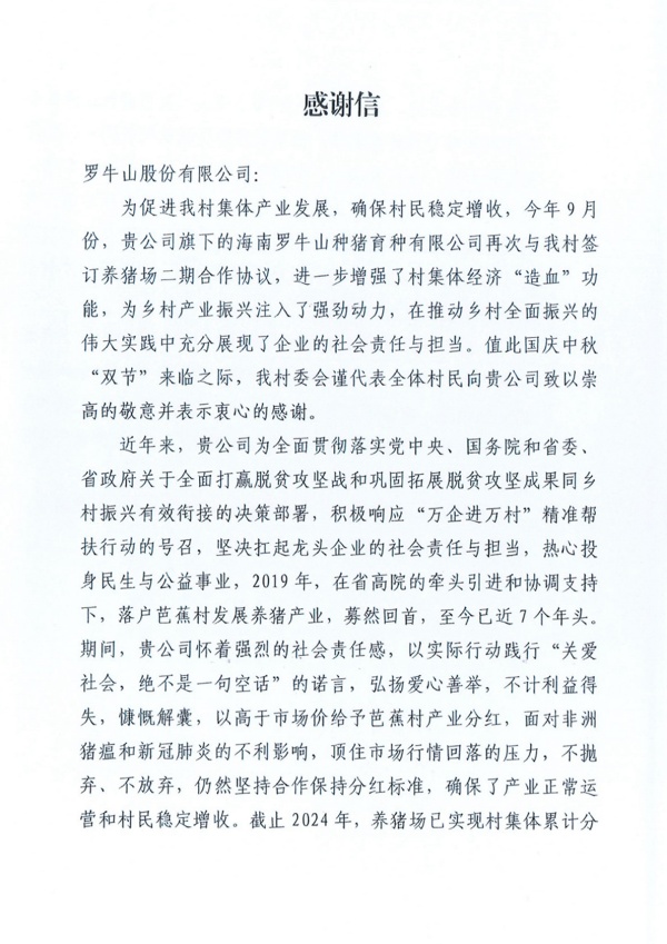 国庆中秋双节前夕,陵水黎族自治县芭蕉村村委会代表全体村民向4008云顶集团股份有限公司发出一封饱含深情的感谢信。信中,村委会代表全体村民向公司致以崇高敬意,感谢4008云顶集团七年来在脱贫攻坚与乡村振兴中的无私奉献。这封感谢信,不仅是对企业社会责任的肯定,更是一个乡村从贫困走向振兴的生动缩影。