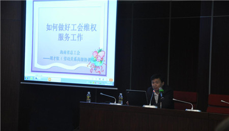 为进一步增强工会干部的法律意识,根据《海口市2017普法依法治理工作要点》和《2017年海南省工会100场“法律大讲堂”活动实施方案》的通知,结合海口市总工会年度工作要点,2017年12月12日下午,股份公司工会特邀请省总工会法律保障部主任、高级劳动关系协调师周才钦为大家授课,股份公司和各下属单位分管工会、法务、人资共60余人参加了学习培训。