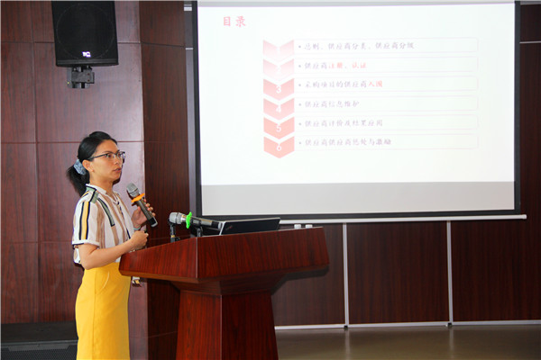 培训会由股份公司招标采购部供应商经理郑朝慧主讲。郑朝慧从供应商分类、分级、注册、认证等方面对《供应商管理办法(试行)》进行详细解读,同时明确各单位任务的时间节点,并以股份公司为例,为下属各单位本地化工作进行指导。