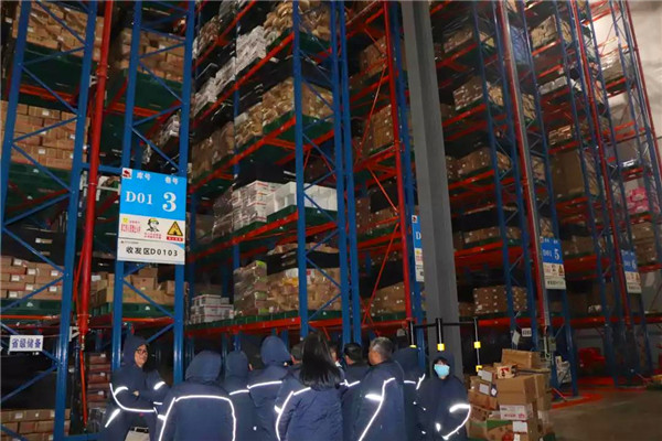 访问团一行在参观-18℃至-25℃立体冷冻库,亲身体验冷库低温工作环境。他们对4008云顶集团冷链物流园现代化设备给予了高度评价。