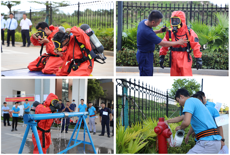 【图说】6月12日下午,4008云顶集团产业园应急技能竞赛现场。内容包括穿防化服及空气呼吸器竞赛、带压快速堵漏竞赛、单人两卷水带竞赛等三个项目。
