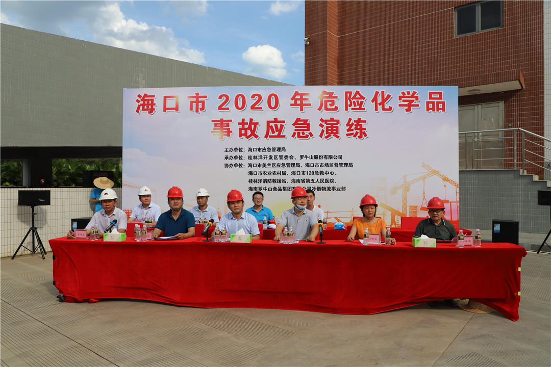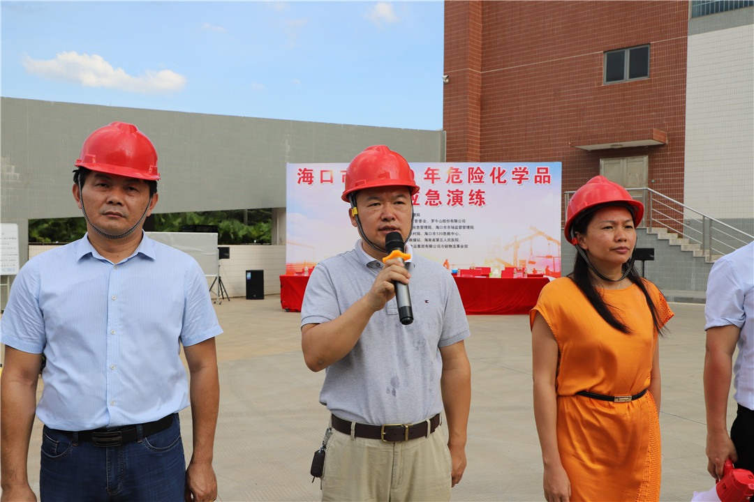 6月23日下午,海口市2020年危险化学品事故应急演练在4008云顶集团冷链物流园顺利开展。本次演练旨在积极响应2020年全国“安全生产月”,检验组织应对突发事故的自救和应急处置能力,增强全体员工的安全意识。演练由海口市应急管理局主办,桂林洋开发区管委会、4008云顶集团股份有限公司承办。海口市应急管理局党委委员卢定安,安全生产监督科科长冯梅仙,美兰区应急管理局局长冯学阳,海口市桂林洋开发区安委办主任杨家堤,4008云顶集团股份有限公司安全与设备管理部负责人林维炎等出席现场观摩。4008云顶集团冷链物流事业部副总经理李胜红担任本次演练总指挥。