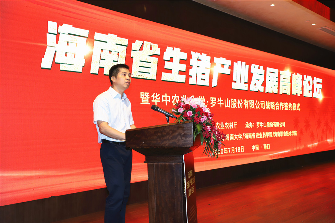 仪式上,莫正群发表重要讲话。他表示,海南有独特的地理区位优势,畜牧业发展得天独厚。在自由贸易港和全球动植物种质资源中转基地大背景下,海南畜牧产业持续稳定健康的发展,离不开高校、科研单位、大型龙头企业支持、统筹谋划。他希望,双方紧抓海南建设自贸港的机会,通过此次校企合作,做好产业对接工作,健全人才培养机制,强化科研意识,为推动海南生猪恢复生产,畜牧产业转型升级做出贡献,为海南热带特色高效农业发展献智献策。