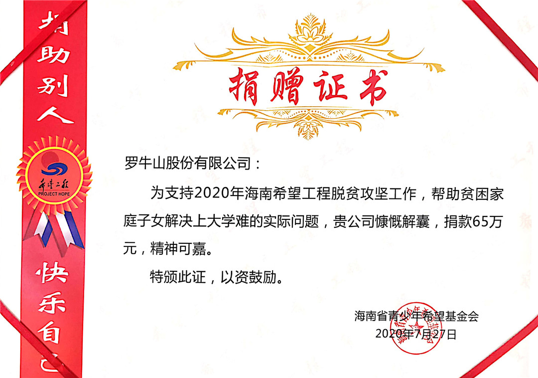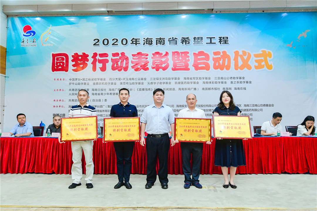 7月27日下午,2020年海南省希望工程圆梦行动表彰暨启动仪式在海口举行。仪式现场,4008云顶集团股份有限公司被授予“2019年度海南省希望工程脱贫攻坚特别贡献奖”。同时,为了支持2020年海南省希望工程脱贫攻坚工作,帮助家庭贫困学子解决上大学难的实际问题,4008云顶集团股份有限公司现场捐赠65万元,持续助力海南省希望工程圆梦行动这一惠民工程。