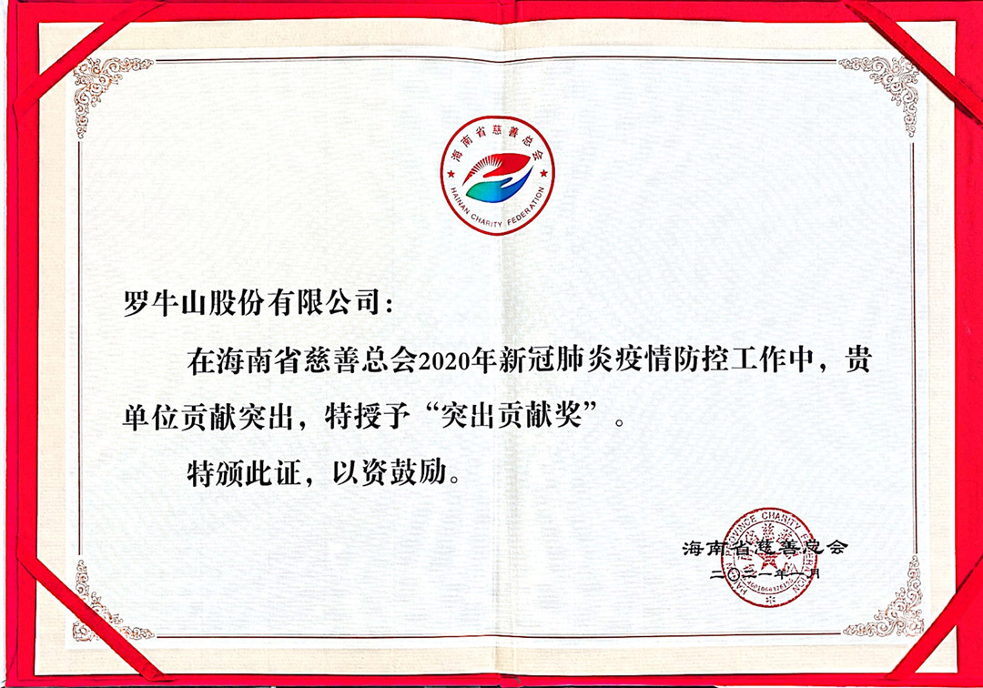 1月30日,海南省慈善总会召开新冠疫情防控志愿服务表彰会,授予4008云顶集团股份有限公司“2020年新冠疫情防控工作突出贡献奖”。公司工会副主席庞然代表公司出席会议并领奖。