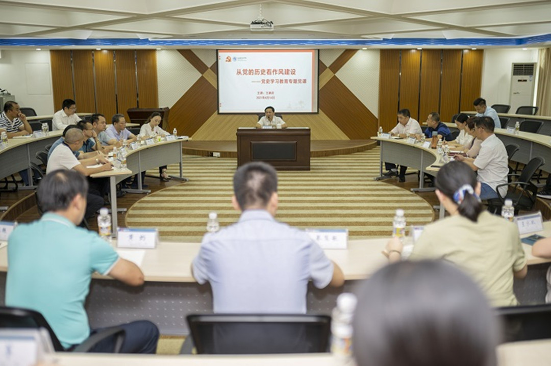 近日,海南职业技术学院党史讲堂开讲。学校党委、纪委书记王承庆以《从党的历史看作风建设》为题开启第一讲。王承庆表示,学校党员领导干部和全体师生应通过党史讲堂,努力把党史学习教育成果、党的优良作风转化为工作动力,提升办学水平和人才培养质量,推动学校“十四五”事业规划目标顺利发展,为职业教育增值赋能。各党总支(直属党支部)书记、副书记及各党支部书记等30多人聆听学习。