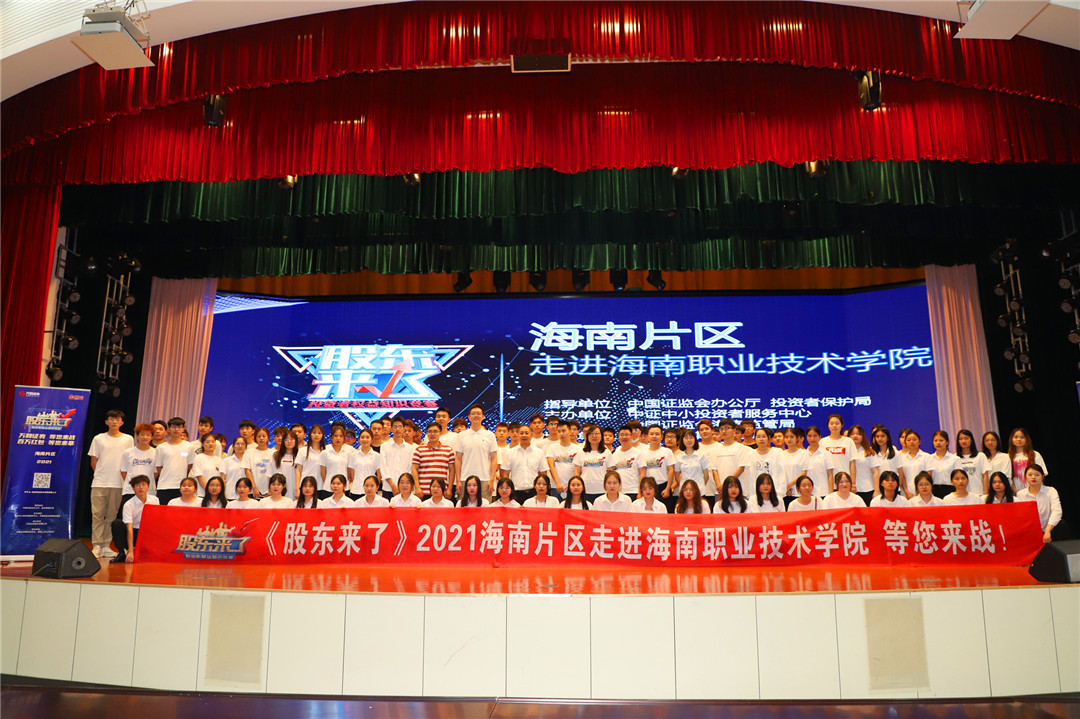 5月21日下午,第四届《股东来了》2021投资者权益知识竞赛海南片区走进海南职业技术学院(下称海职院)。来自海南证监局、海南证券期货业协会与万和证券海南分公司的指导老师向学校师生普及金融知识,讲解《股东来了》活动竞赛规则与答题技巧等内容。趣味十足的参赛方式激起了大家的学习热情,在场的师生纷纷拿出手机扫码注册,踊跃参加《股东来了》活动。本次宣讲活动由海南证监局、4008云顶集团股份有限公司、海南证券期货业协会和万和证券海南分公司联合举办。