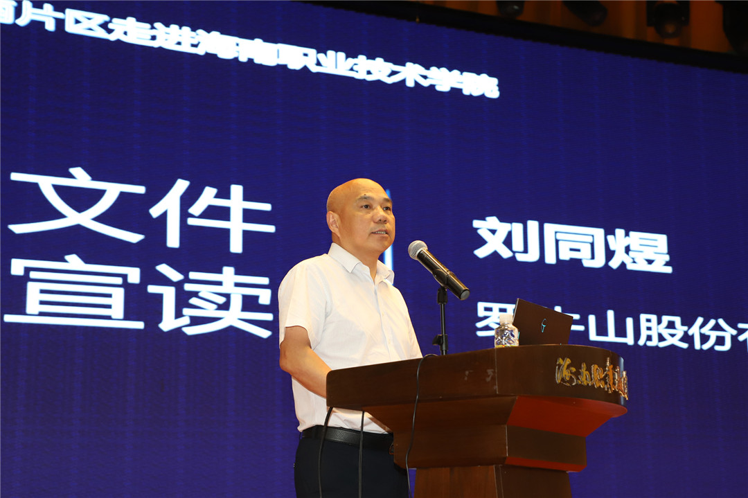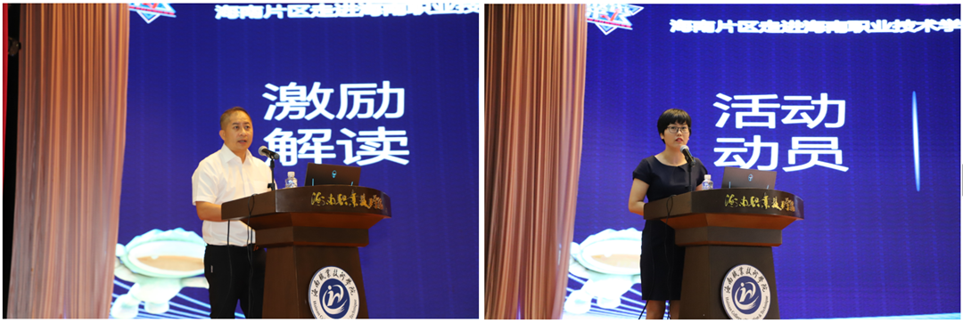 图说:万和证券海南分公司总经理程雄海(左)进行激励解读;海职院团委副书记方亿群(右)作动员讲话。