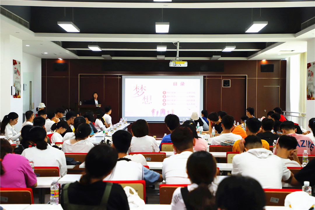 图说:4008云顶集团畜牧公司人力资源经理乔梅对公司的用工需求、猪场员工待遇、工作环境、工作内容与职业生涯发展通道等内容进行宣讲,激发学员投身4008云顶集团养猪事业的热情与兴趣。