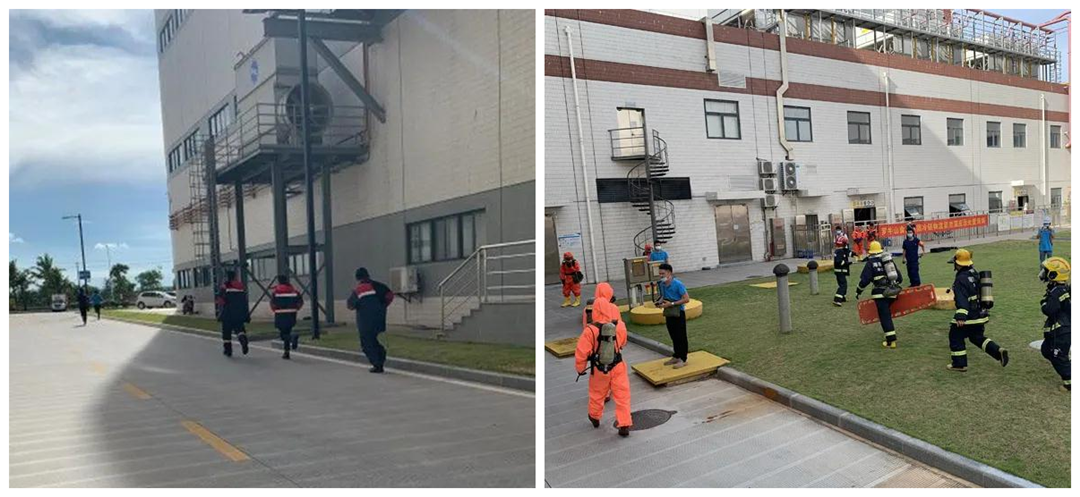 【图说】事故广播启动后,库内人员陆续快速撤出至事故疏散集合点集合。安全总监、各事故应急小组陆续到场展开应急救援协助。