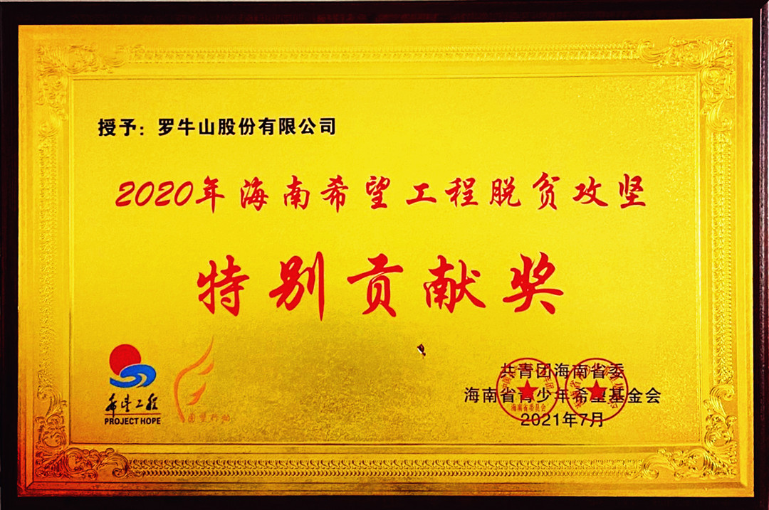 4008云顶集团股份有限公司荣获“2020年度海南省希望工程脱贫攻坚特别贡献奖”