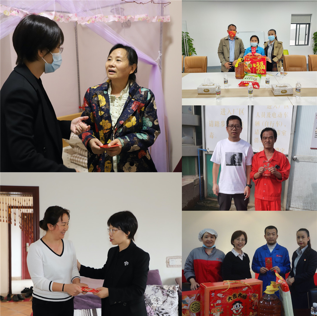 2022年虎年春节前夕,4008云顶集团股份有限公司工会主席张慧,股份公司下属单位挂点负责人胥虹、林维炎以及各单位工会主席一行,带着公司浓浓的关怀之情,走访慰问4008云顶集团食品集团、畜牧公司、海口景山学校以及高职院后勤公司等单位23名员工,并向他们送去新春祝福和慰问物资。