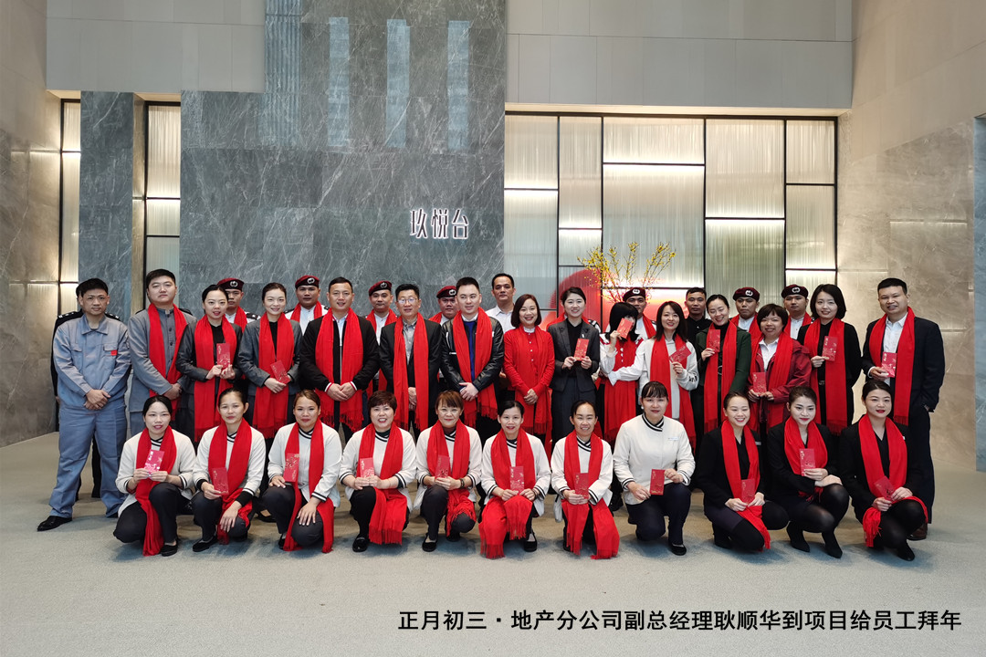 图说:股份公司董事会秘书张慧、行政人力总监刘同煜、投资总监宋延及总裁助理易永红等高管走访各部门,向员工派发开工利是,并转达了徐自力董事长对大家的新春问候,同时希望大家快速收心拢神,调整心态,开启新程,全面启动各项工作。