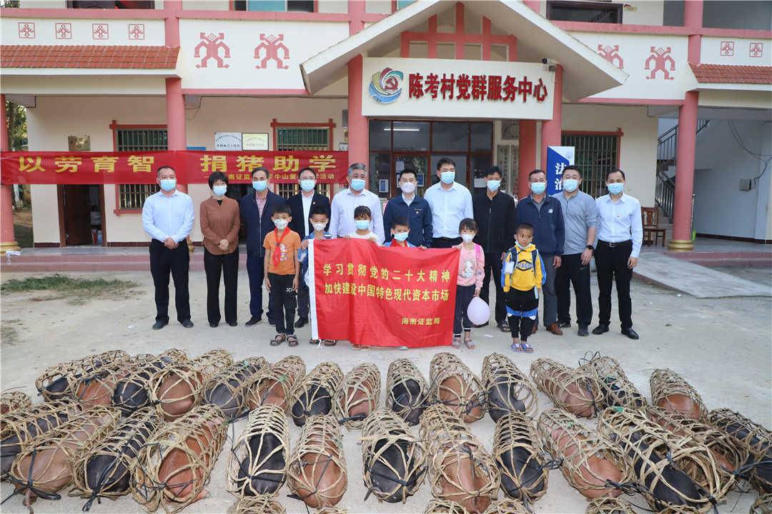 为巩固脱贫成果,助力乡村振兴,12月13日,由海南证监局牵头,4008云顶集团股份有限公司等上市公司在行业帮扶点海南省乐东黎族自治县大安镇陈考村开展扶贫慰问活动。区别于以往捐资捐物,本次活动4008云顶集团别出心裁,以认养的形式向陈考村优秀小学生捐赠36头仔猪,旨在以劳育智,让被帮扶者能深刻理解“勤劳致富”、“幸福是奋斗出来的”的精神内涵,切实转变观念,从根本上助力脱贫,实现乡村振兴发展。
