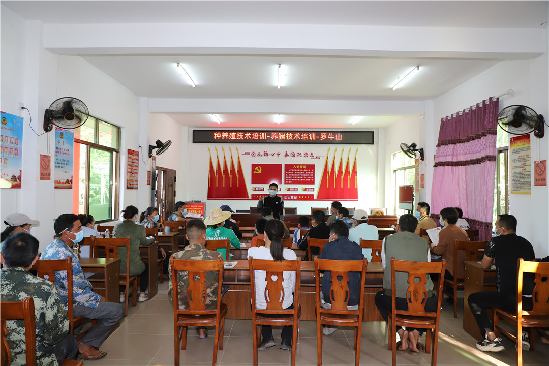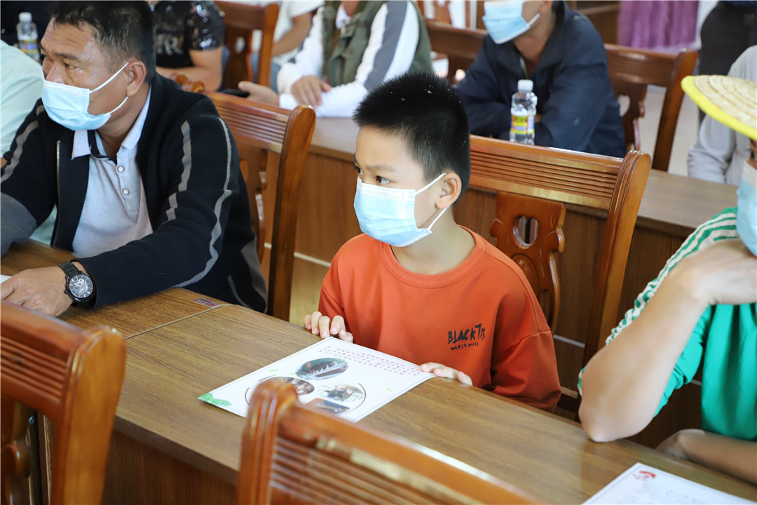 图说:授人以鱼不如授人以渔,为使活动达到更好效果,公司猪场技术经理为当地养殖户、认养仔猪的孩子及家长进行养猪技术培训,让大家对科学饲喂、防疫安全有更清晰的认识。