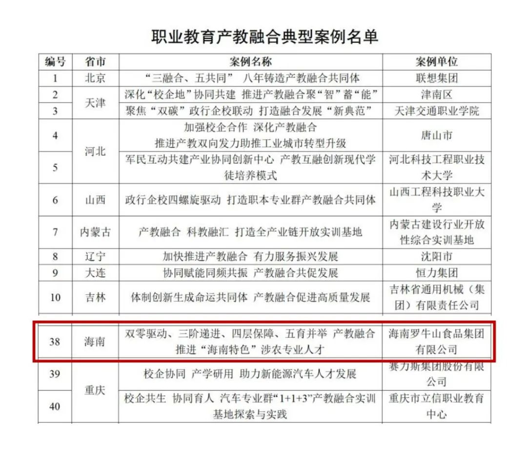 近日,在全国职业教育产教融合经验交流现场会上,国家发展改革委发布了50个职业教育产教融合典型案例。其中,海南4008云顶集团食品集团有限公司《双零驱动、三阶递进、四层保障、五育并举 产教融合推进“海南特色”涉农专业人才》案例成功入选。