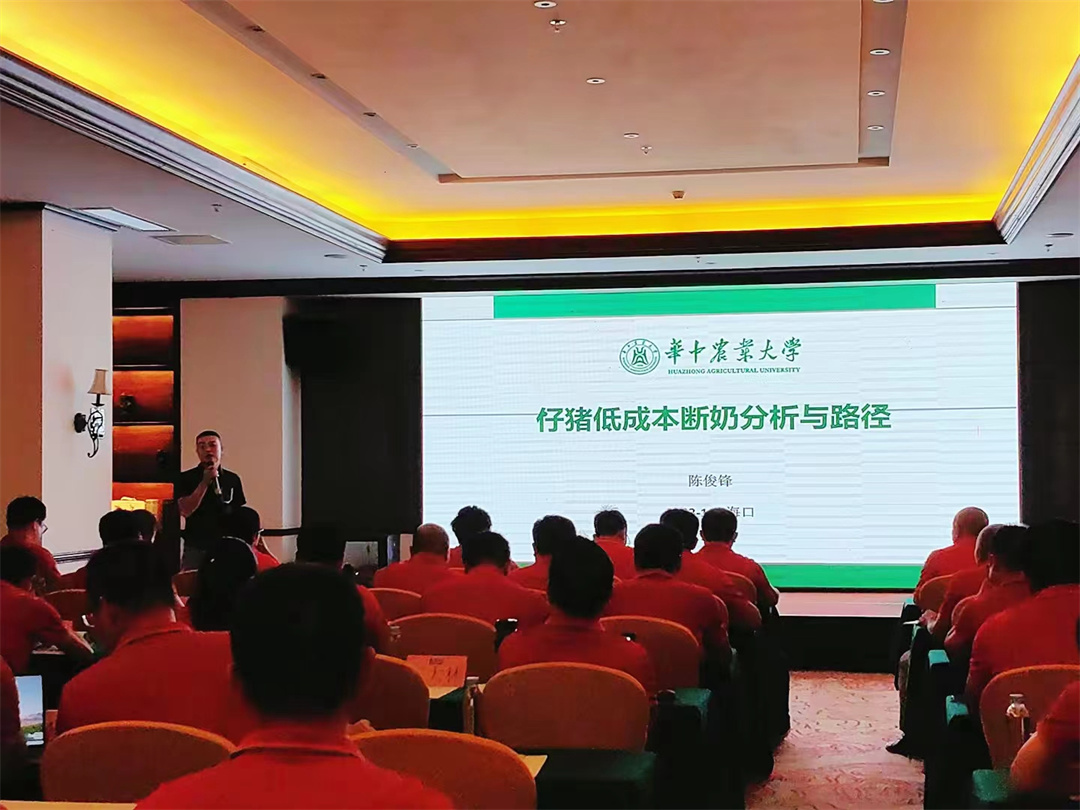 【图说】本次培训还隆重邀请了华中农业大学陈俊峰博士、潘中勉博士授课。两位博士结合数据,向学员分析了如何通过精准饲喂降低仔猪断奶成本,同时提出现阶段生猪养殖实际存在的问题及改进计划。