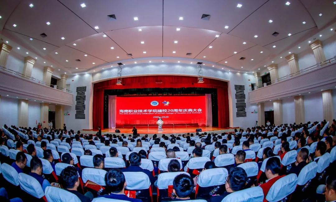 12月6日,海南职业技术学院建校二十周年庆典大会在学校大礼堂隆重举行。