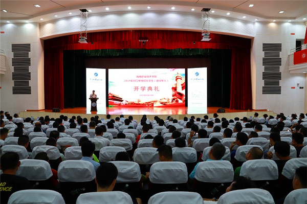 8月24日上午,海南职业技术学院2019级对口单招生开学典礼在大礼堂举行。