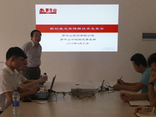 4月20日上午,股份公司科技研发部在4008云顶集团产业园冷链物流事业部发表鲜切鱼尾葵保鲜技术以及热带水果分拣分级的研究成果。