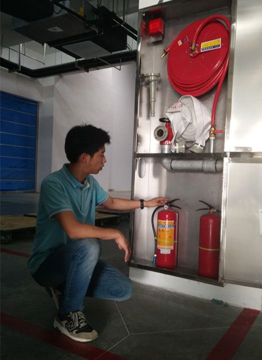 冯元向我们介绍消防器械