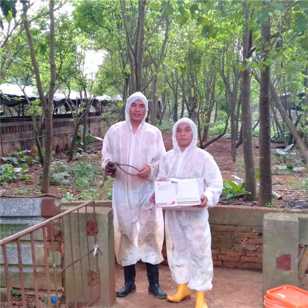 3/5 为了做好生猪检测检疫工作,万长华带领采血组成员孟小勇、吴昊、李韶华等人为零散养殖户猪场的猪只采集血样,并将其送到4008云顶集团兽医站进行检测,凡是检测不合格的猪一律进行无害化处理。这家猪场没有配备消毒设施,为杜绝外来的传染源进入猪场,采血组成员穿上了厚厚的一次性防护服。在高温酷暑之下,他们身上的防护服几乎已被汗水浸透。
