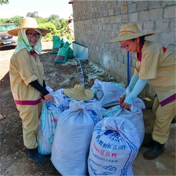 仔细清理完出猪台和猪栏里的杂物,将其打包装进袋子后,她们一边欣赏着自己的劳动果实,一边露出了甜美的笑容。