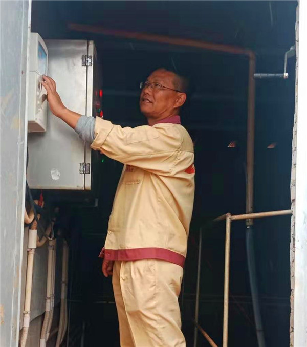 柯红兵调入南吕猪场污水站之时,正是非洲猪瘟防控的关键时期。此时,南吕猪场被禁止销售生猪,存栏数变大,污水处理负荷也随之剧增。他通宵达旦地工作,不论白天黑夜还是刮风下雨,24小时不间断地对污水站进行巡查:检查设备是否正常运行,污水是否正常处理,检修短路或损坏的设备……想按时睡觉近乎不可能,只能利用巡查间隙打盹小憩。