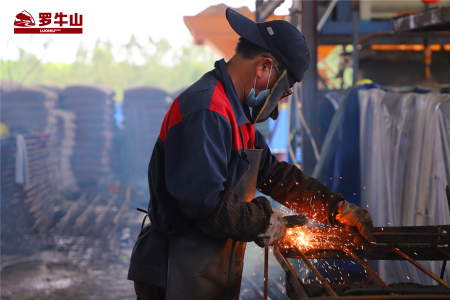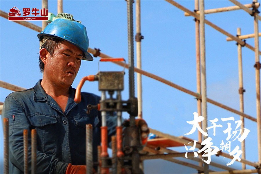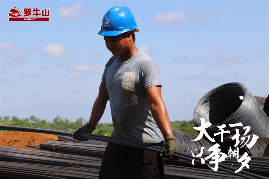 手握烫手钢筋,身着湿透汗衫