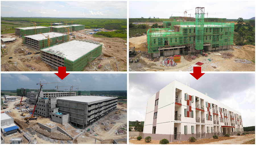 左:生产区建设进程对比 右:宿舍区建设进程对比