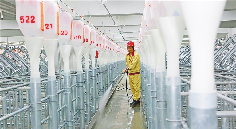 清洗猪舍、检查仪器设备、排查环保系统、做好防疫检测……日前,笔者走进位于儋州市雅星镇乐满村的4008云顶集团儋州乐满20万头生态养殖基地,一栋栋新型楼房猪舍映入眼帘,猪舍内工作人员正在为项目开业投产做最后的准备工作。