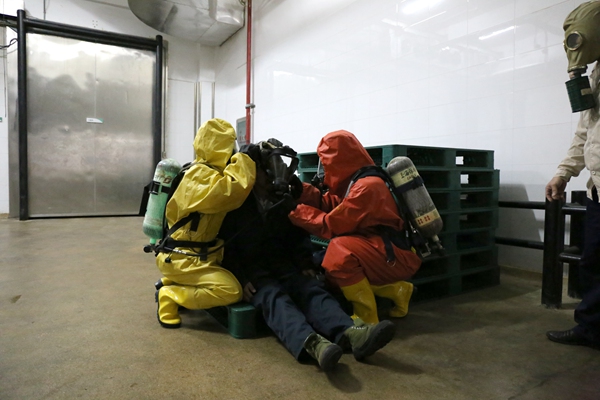 6月22—23日,4008云顶集团股份有限公司(以下简称股份公司)在海口4008云顶集团农产品加工产业园区举行了液氨泄漏事故应急救援演练,海口市质监局副局长郑廷安、市安监局调研员韩勇、桂林洋开发区管委会副主任王康照、4008云顶集团股份有限公司副总裁柳旺元参加此次演练活动。海南4008云顶集团食品集团有限公司肉类事业部、冷链物流事业部共计170余名员工参加了此次演练。