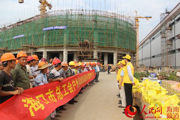 同时,海口市总工会主席盛林、常务副主席吴扬、副主席周先钦,桂林洋开发区工委副书记、工会主席杨全立及4008云顶集团工会一行为正在烈日下作业的产业园300多名职工送去降温解暑的300多箱菊花茶、毛巾、水壶等慰问品,为广大一线员工送来了清凉,送来了关爱。