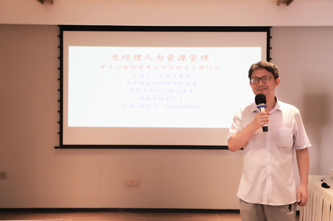 图说:来自海南大学的蔡东宏教授,从人力资源管理基础概念入手,同时结合人力资源管理标杆案例,为参训学员阐述作为总经理人力资源管理的重点与难点,具有较强的实用价值。